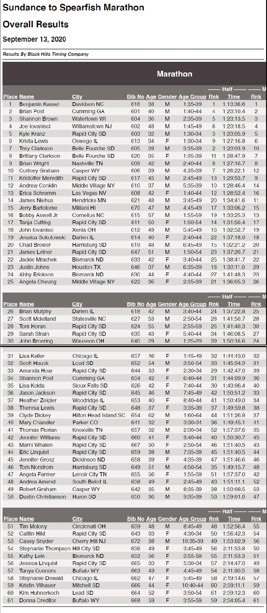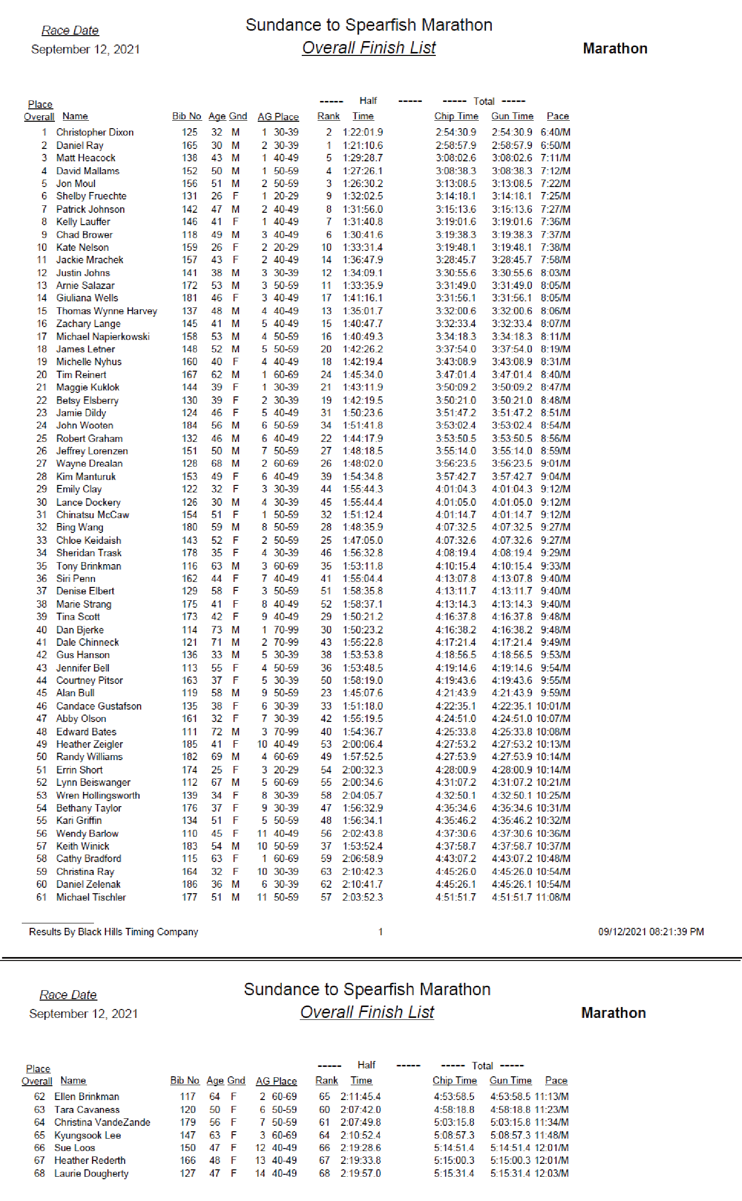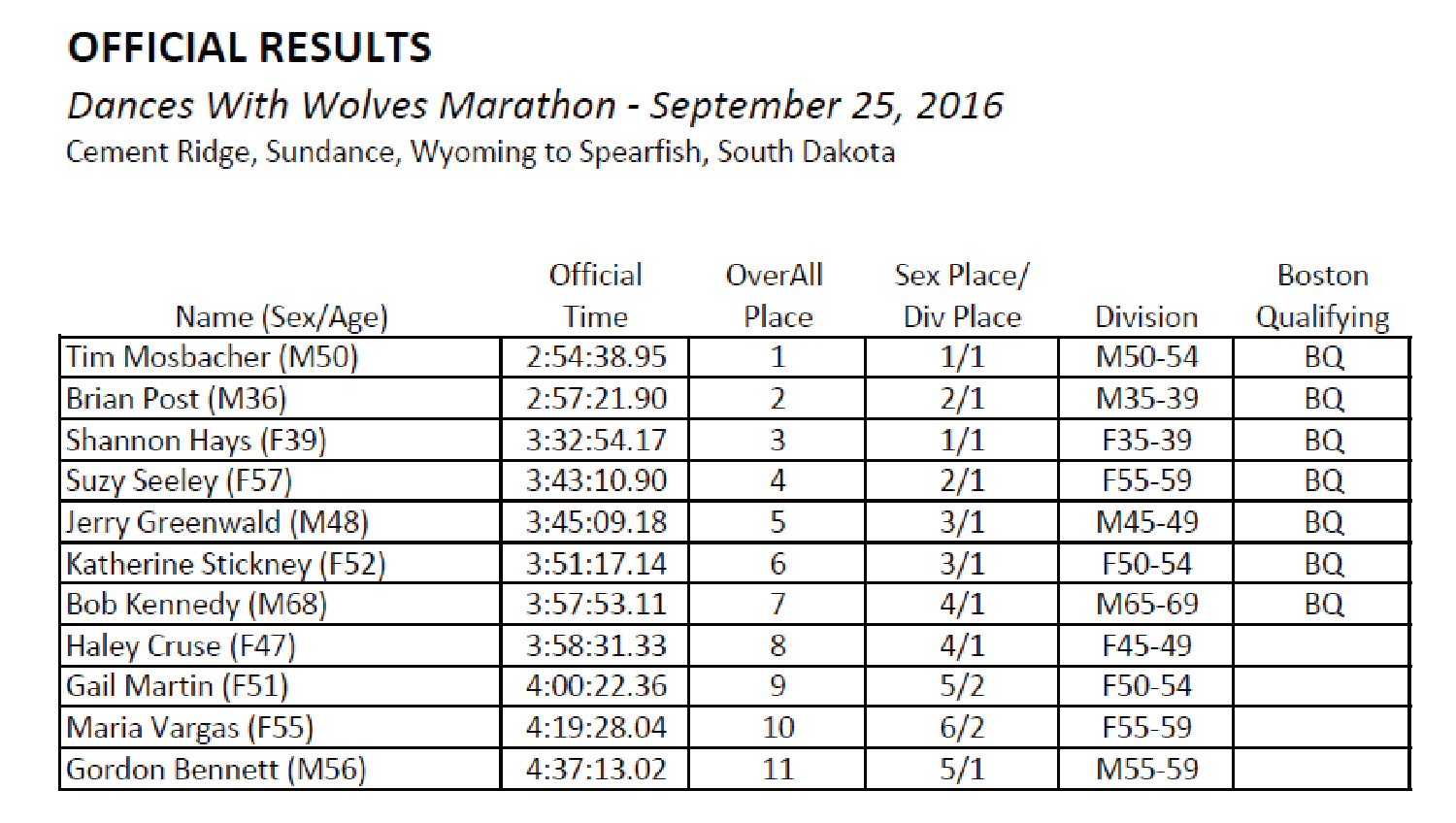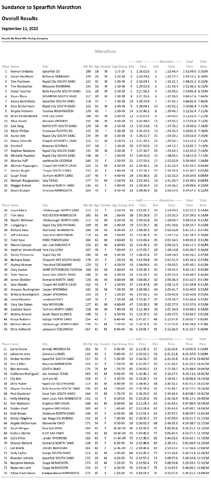 Race Results