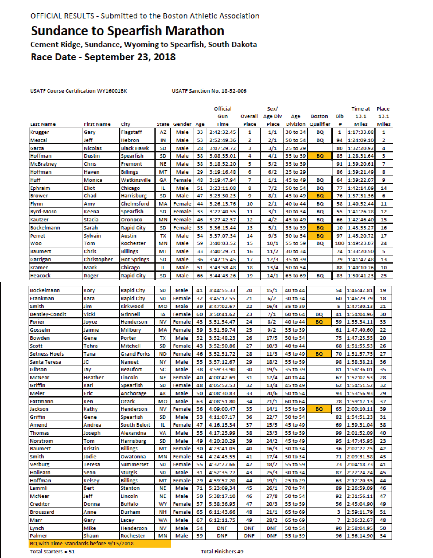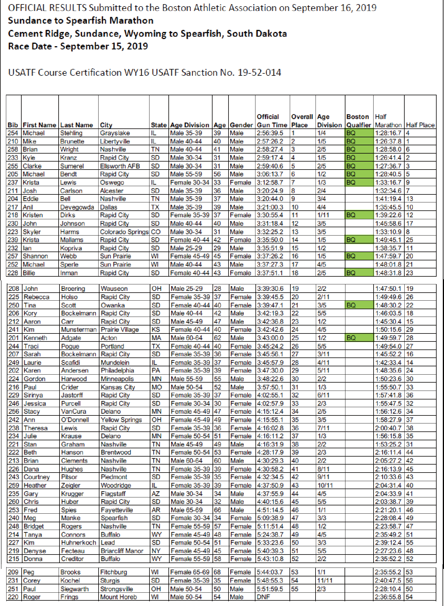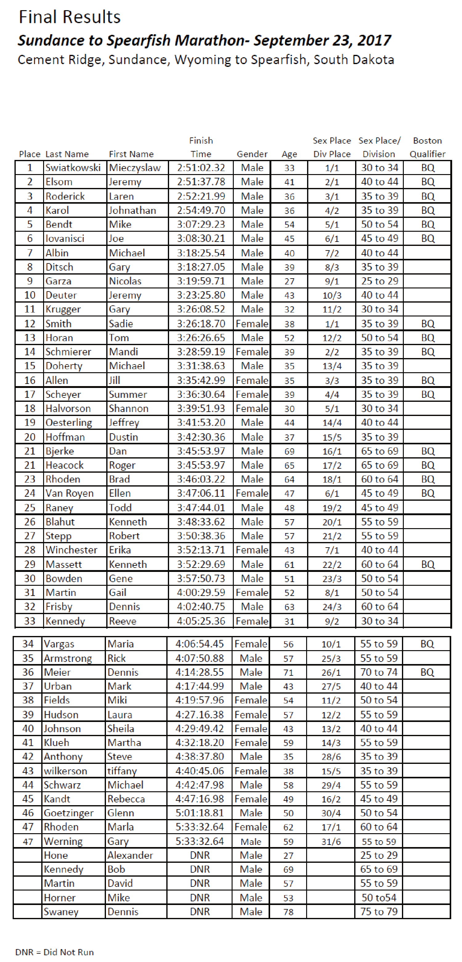 Race Results
